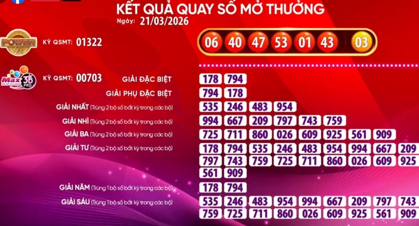 KẾT QUẢ XỔ SỐ VIETLOTT 21/3/2026 - THỨ BẢY