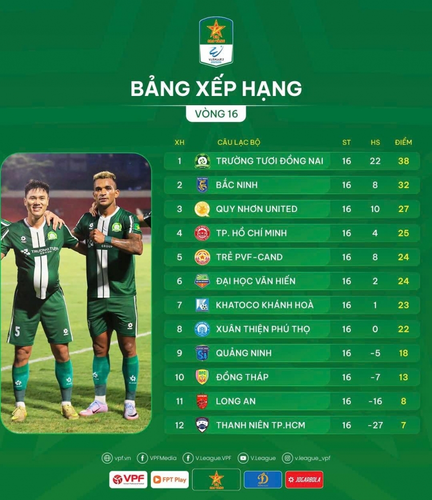 CLB Trẻ PVF-CAND âm thầm nhưng có những bước tiến lên khá mạnh mẽ trên BXH. Sau vòng 16, đội bóng này tạm chiếm giữ vị trí thứ 5 với 24 điểm trong tay. Trong 6 chiến thắng tính đến vòng 16, CLB Trẻ PVF-CAND giành đến 3 chiến thắng từ đầu lượt về (còn lại 1 hòa và 1 thất bại). Điều đó cho thấy CLB Trẻ PVF-CAND càng thi đấu càng tiến bộ và đang có phong độ cao giai đoạn hiện nay. Chính vì vậy, họ có thể là cái tên có thể tạo ra thêm sự hấp dẫn trong cuộc đua tốp 3 cùng các đối thủ khác.