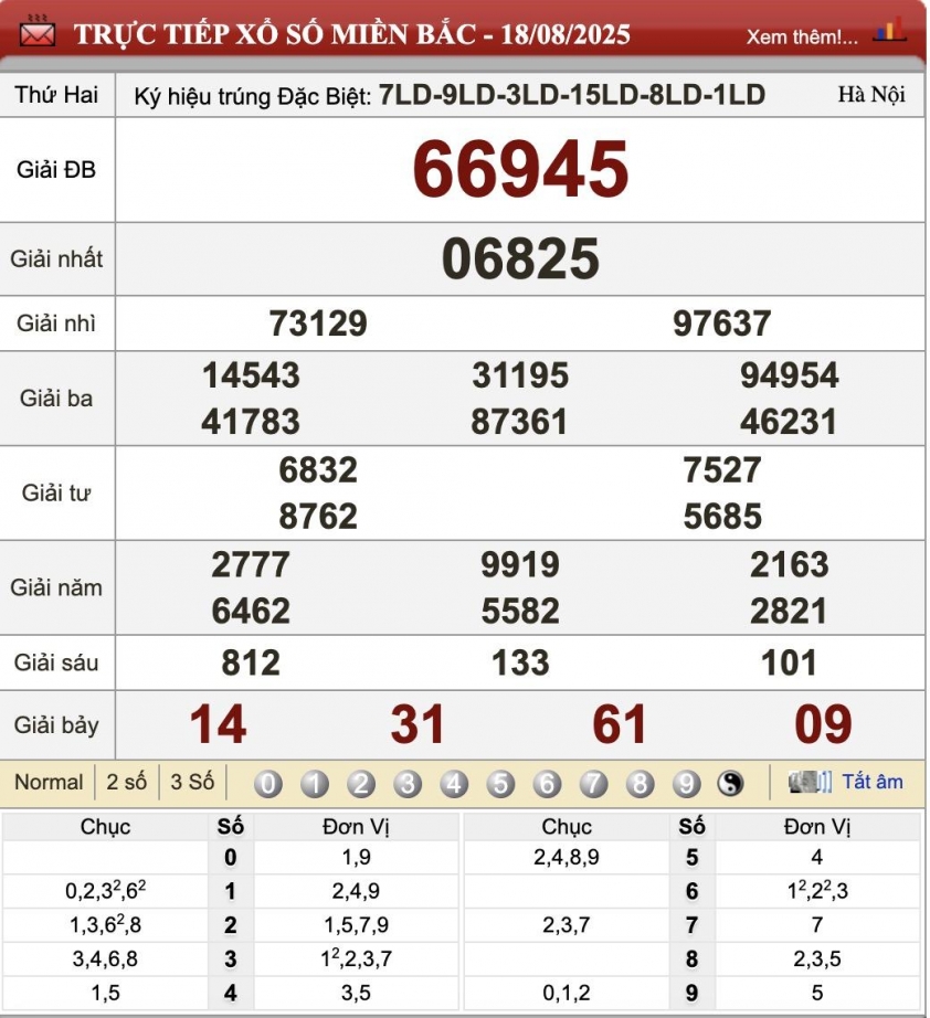 Kết quả xổ số miền Bắc (XSMB) hôm nay ngày 18/8