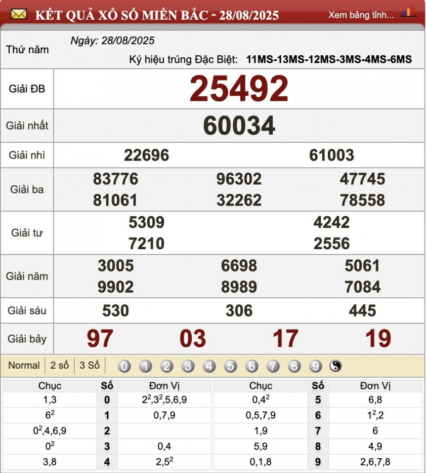 Kết quả xổ số miền Bắc (XSMB) hôm nay ngày 28/8