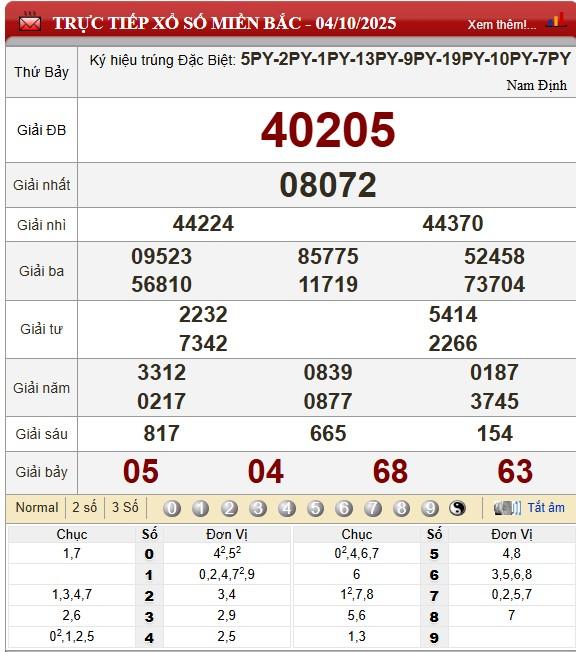 XSMB 4/10/2025 - Kết quả xổ số miền Bắc hôm nay 4/10/2025