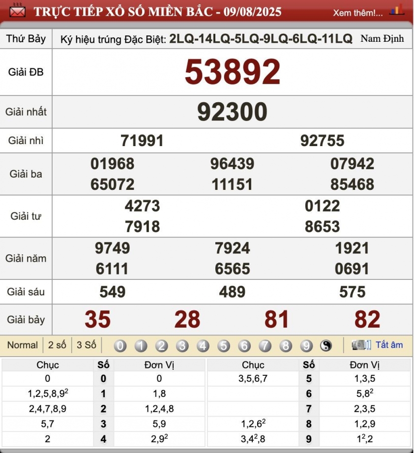 XSMB 9/8/2025 - Kết quả xổ số miền Bắc hôm nay 9/8/2025