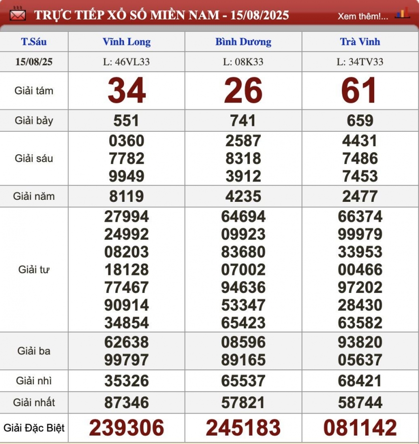 Kết quả xổ số miền Nam (XSMN) hôm nay ngày 15/8