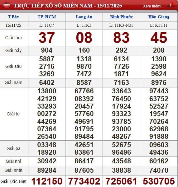 Kết quả xổ số miền Nam (XSMN) hôm nay ngày 15/11