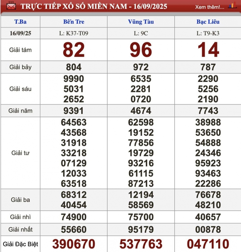 XSMN 16/9/2025 - Kết quả xổ số miền Nam hôm nay 16/9/2025