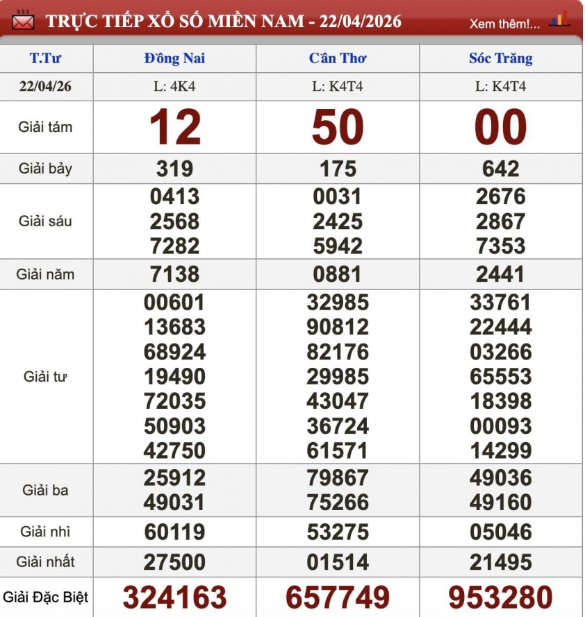 Kết quả xổ số miền Nam (XSMN) hôm nay ngày 22/4