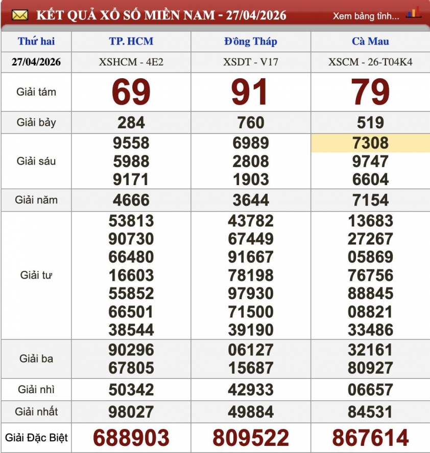 Kết quả xổ số miền Nam (XSMN) hôm nay ngày 27/4