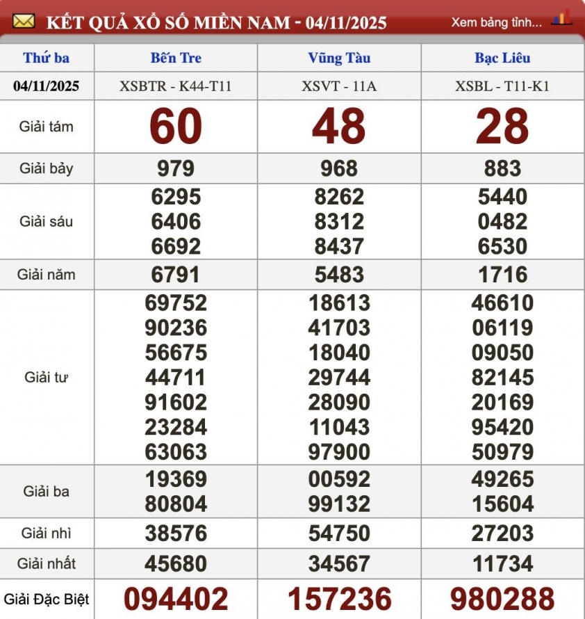 Kết quả xổ số miền Nam (XSMN) hôm nay ngày 4/11