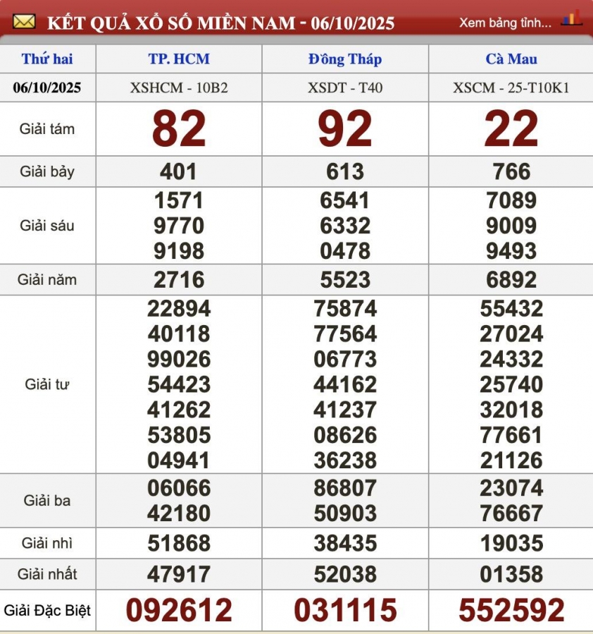 Kết quả xổ số miền Nam (XSMN) hôm nay ngày 6/10