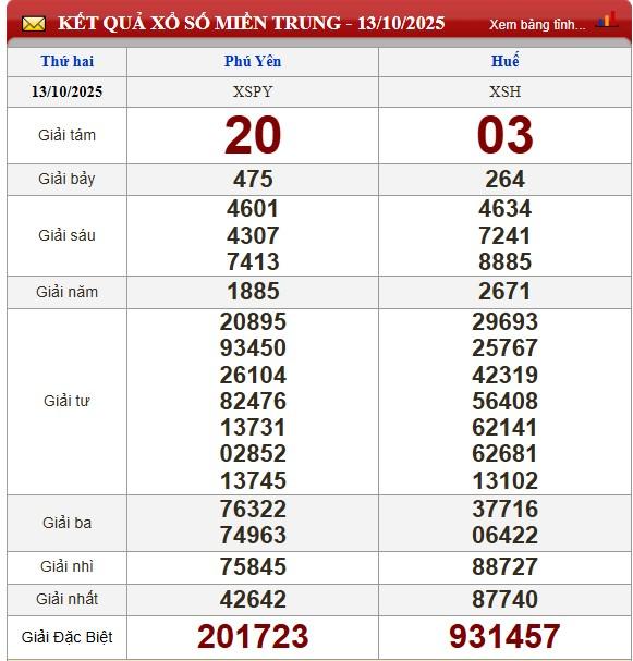 Kết quả xổ số miền Trung (XSMT) hôm nay ngày 13/10