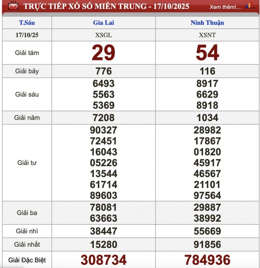 Kết quả xổ số miền Trung (XSMT) hôm nay ngày 17/10