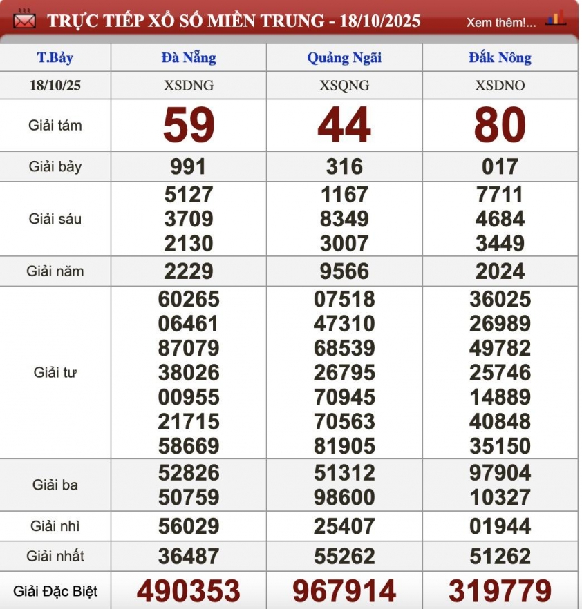 Kết quả xổ số miền Trung (XSMT) hôm nay ngày 18/10