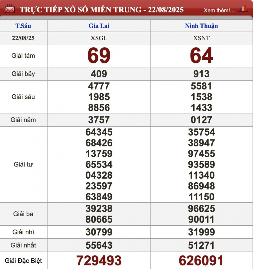 Kết quả xổ số miền Trung (XSMT) hôm nay ngày 22/8