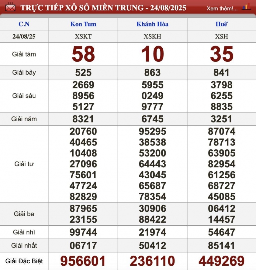 XSMT 24/8/2025 - Kết quả xổ số miền Trung hôm nay 24/8/2025