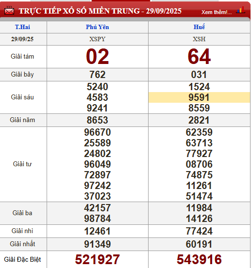 Kết quả xổ số miền Trung (XSMT) hôm nay ngày 29/9
