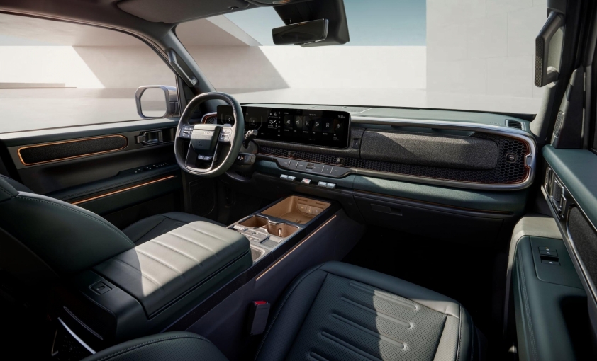 Bên trong cabin, Kia Tasman nổi bật với hai màn hình kỹ thuật số đồng kích thước 12,3 inch, hệ thống âm thanh cao cấp Harman Kardon, bàn điều khiển gập linh hoạt, cùng sạc điện thoại không dây.
