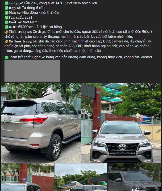 Tham khảo thị trường xe đã qua sử dụng, một chiếc Toyota Fortuner sản xuất năm 2021 đang được chào bán với mức giá khá hấp dẫn.