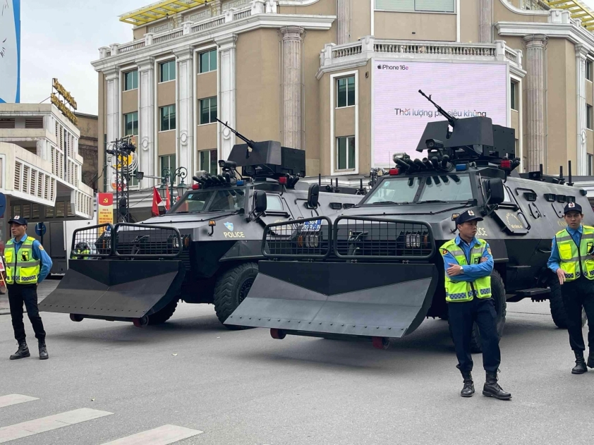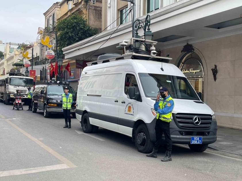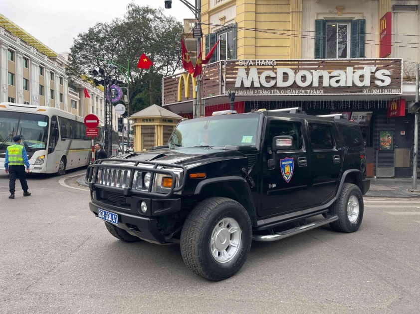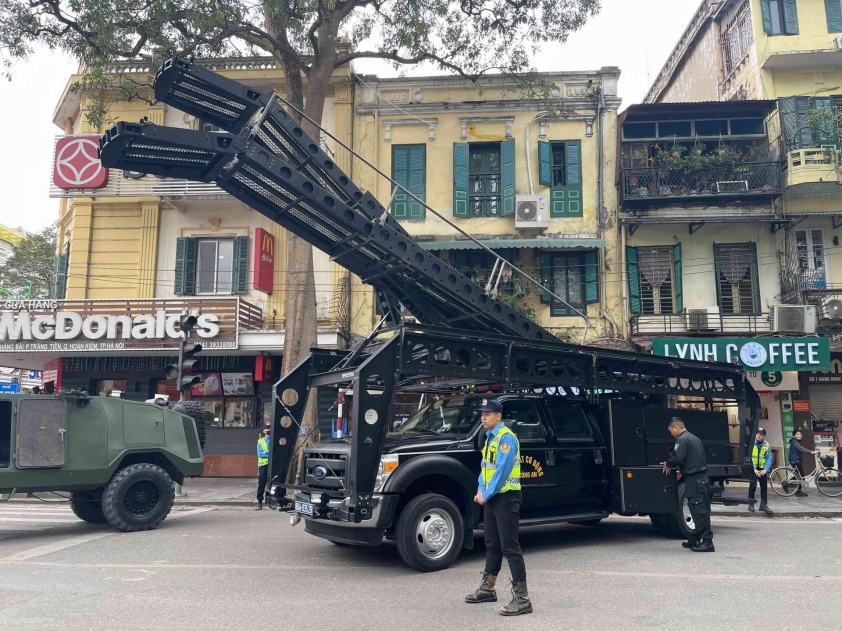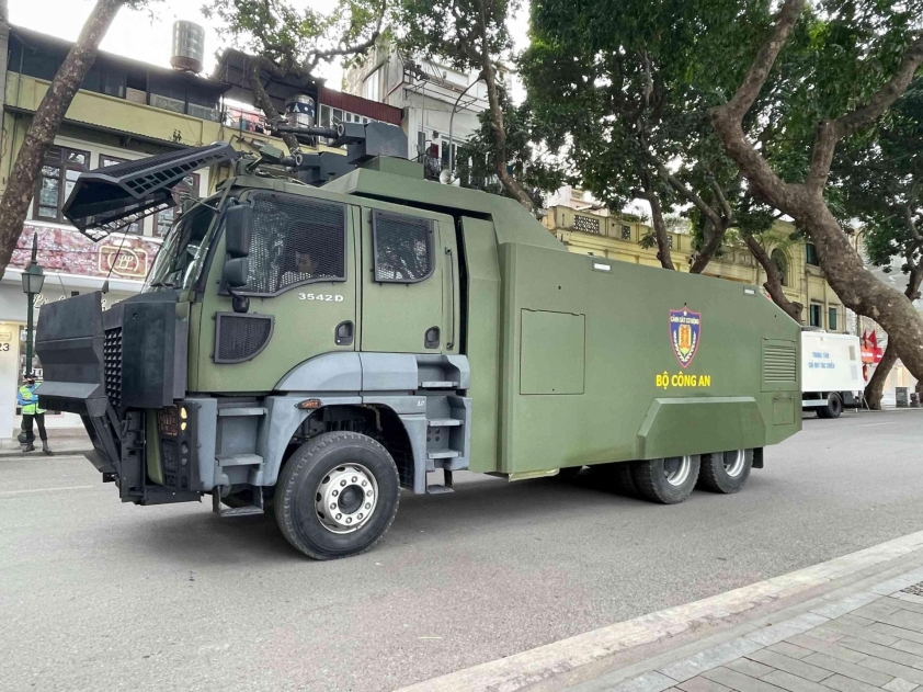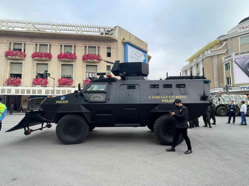 Chiều ngày 7/3, tại khu vực phố đi bộ Hồ Gươm (Hà Nội), nhiều phương tiện đặc chủng của lực lượng Công an nhân dân Việt Nam đã xuất hiện, thu hút sự chú ý của người dân và du khách.