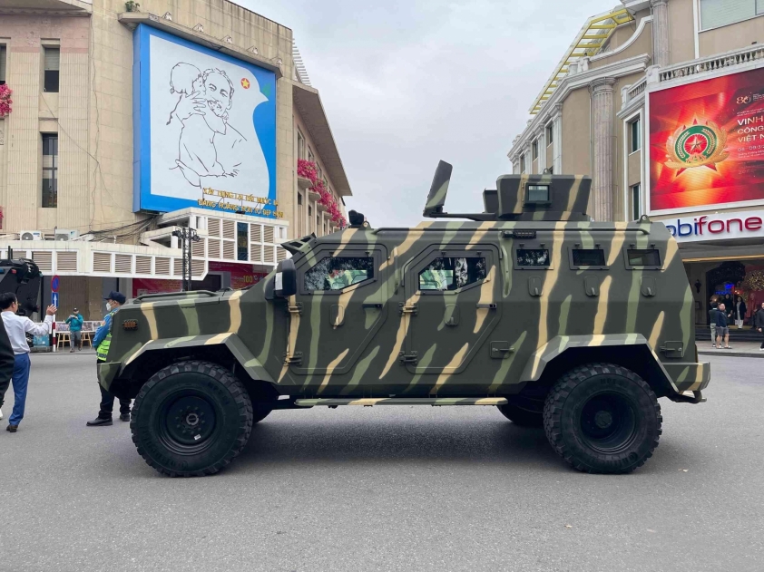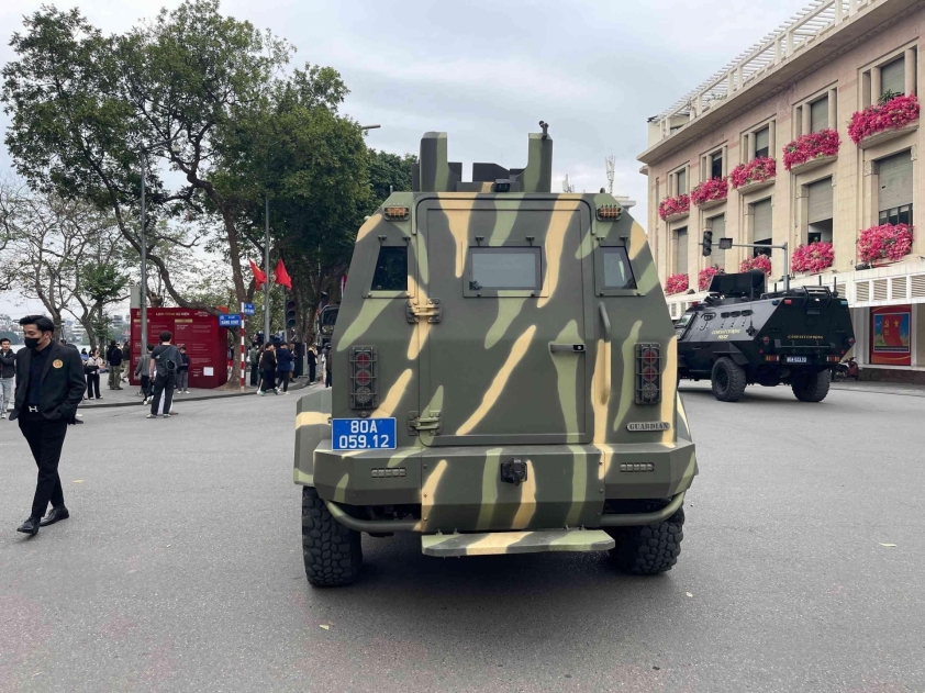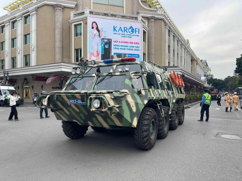 Ngoài ra, tại khu vực phố Tràng Tiền, người dân còn bắt gặp một số ô tô đặc chủng được trang bị nhiều ăng-ten, phục vụ công tác thông tin liên lạc trong các nhiệm vụ quan trọng.