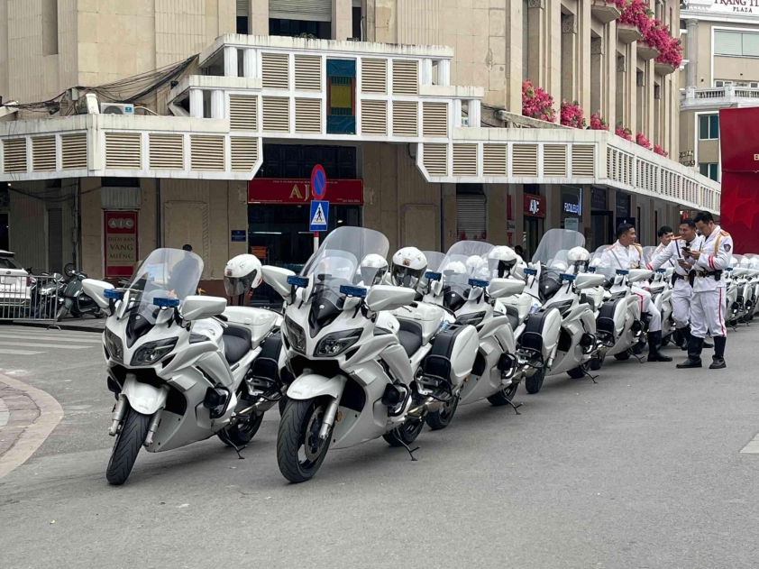Dàn xe đặc chủng hiện đại của lực lượng Công an nhân dân Việt Nam xuất hiện tại phố đi bộ Hồ Gươm, gây ấn tượng mạnh với người dân và du khách.