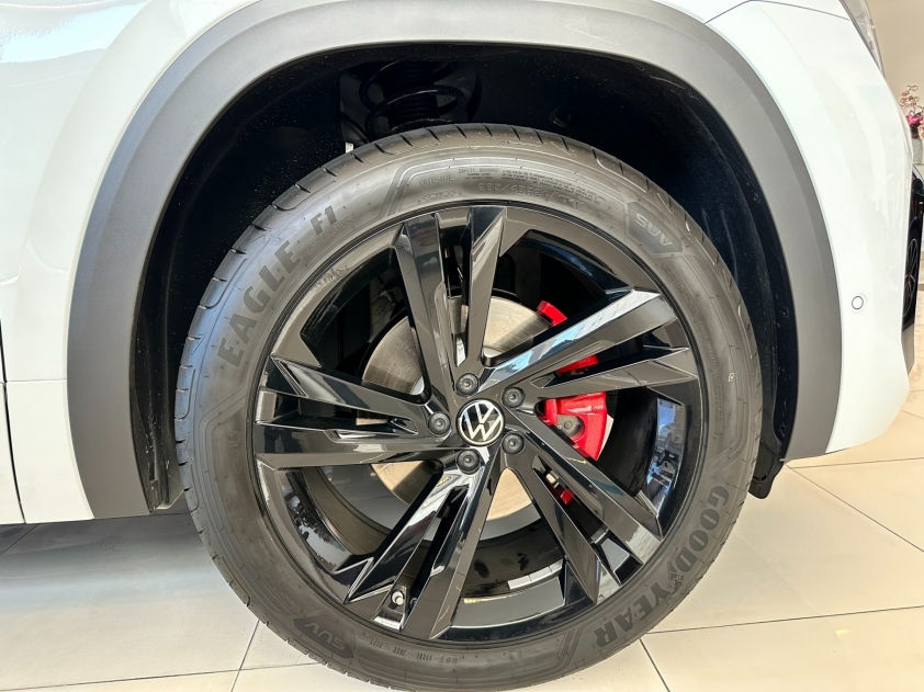 Ngoài ra, xe còn có cản sau hầm hố, cặp ống xả giả, bộ mâm R-Line 21 inch, cùm phanh màu đỏ kết hợp cùng lốp của Goodyear.
