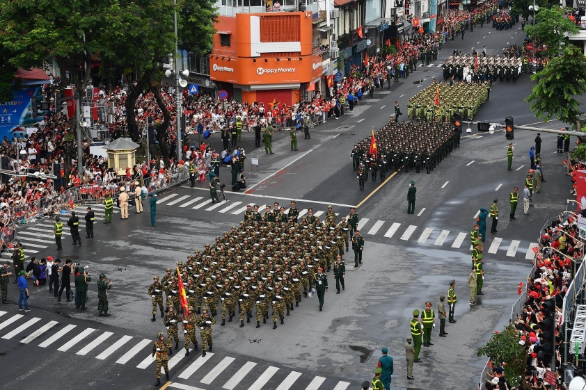 Sự kiện có sự tham gia của nhiều lực lượng gồm bộ binh, cơ giới, không quân và hải quân. Khối diễu binh lên tới gần 16.000 người, được chia thành 43 khối diễu hành, 18 khối đứng cùng 14 khối xe pháo và phương tiện đặc chủng của Quân đội, Công an.