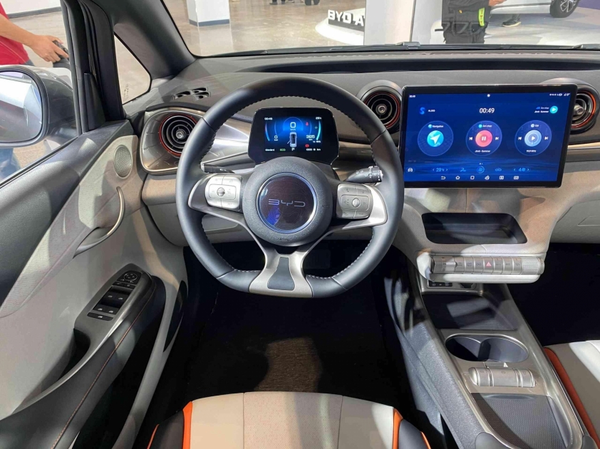 Bên trong khoang lái, Dolphin được trang bị nhiều tiện nghi hiện đại như ghế bọc da tổng hợp, bảng đồng hồ kỹ thuật số 5 inch và màn hình giải trí 12,8 inch có thể xoay.