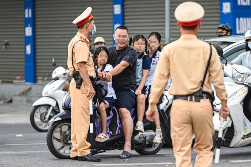 Các lỗi thường gặp là học sinh không đội mũ bảo hiểm hoặc phụ huynh chở con nhưng người ngồi sau không đội mũ.