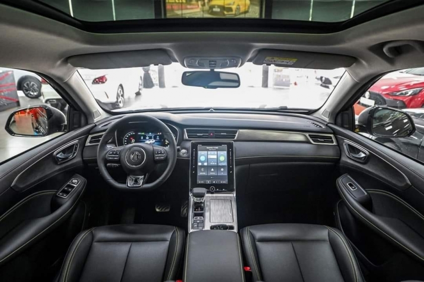 Bên trong khoang lái, MG RX5 được trang bị vô-lăng bọc da, màn hình 12,3 inch sau vô-lăng, màn hình cảm ứng trung tâm 14,1 inch đặt dọc, kết nối Apple CarPlay/Android Auto, điều hòa tự động 2 vùng, sạc không dây, cửa sổ trời toàn cảnh, cần số điện tử, khởi động nút bấm, phanh đỗ điện tử,...