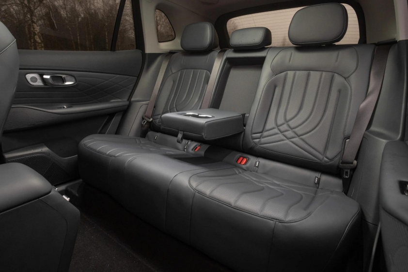 Hệ thống ghế ngồi bọc da màu xanh sẫm hoặc nâu, hàng ghế trước chỉnh điện, có thông gió và sưởi, nhưng đã bị lược bỏ massage và bệ đỡ chân ghế phụ. Hàng ghế sau rộng rãi với sàn phẳng, tựa lưng ngả sâu và đầy đủ cửa gió điều hòa, cổng USB-A, USB-C. Khoang hành lý đạt dung tích 528 lít và có thể mở rộng lên 2.065 lít khi gập ghế, vượt trội so với bản thuần điện.