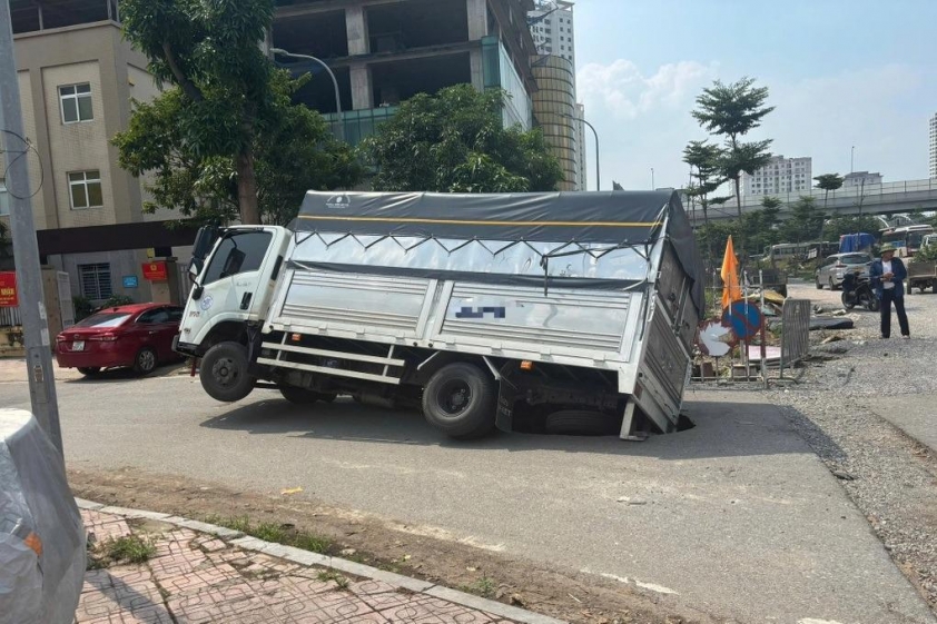 Khoảng 12h40 ngày 9/10, tài xế Nguyễn Tiến Dũng điều khiển ô tô tải mang biển số 29E-407.xx di chuyển trong khu đô thị Nam Cường, thuộc phường Nghĩa Đô (quận Cầu Giấy, Hà Nội). Khi đến gần trụ sở Công an phường Nghĩa Đô, chiếc xe bất ngờ bị sụt xuống một hố sâu hơn 1m giữa mặt đường.