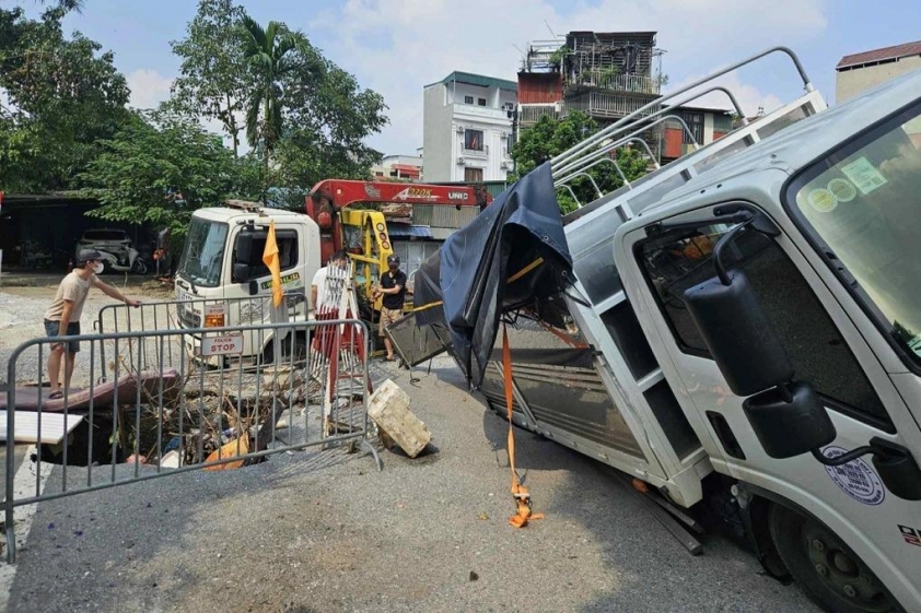 Trưa ngày 9/10, một xe tải bất ngờ sụt xuống hố sâu hơn 1m trên phố Trần Cung (phường Nghĩa Đô, Hà Nội), may mắn không gây thương vong nhưng khiến người dân hoang mang.