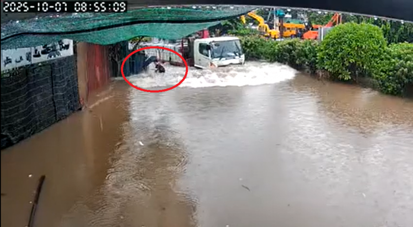 Sáng 7/10, mưa lớn kéo dài khiến nhiều tuyến phố Hà Nội chìm trong biển nước, giao thông hỗn loạn. Tại phố Kẻ Giàn (đoạn nối Tân Xuân ra Phạm Văn Đồng, gần khu đô thị Ciputra), một tình huống thót tim đã được camera người dân ghi lại.