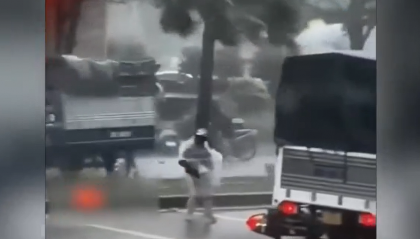 Khi cô còn loay hoay giữa mưa gió, tài xế một chiếc xe tải lập tức lùi xe lại, dùng thân xe chắn gió, tạo vùng an toàn để cô đứng dậy và đưa xe ra khỏi vị trí nguy hiểm.