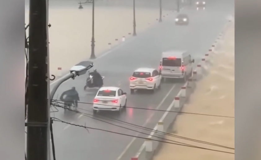 Trong khung cảnh khắc nghiệt đó, một số tài xế ô tô, xe tải đã có hành động khiến cộng đồng mạng xúc động: dùng thân xe làm "lá chắn" che chắn cho người đi xe máy.