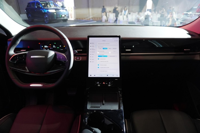 Cần số được bố trí phía sau vô-lăng 2 chấu, tương tự cách sắp xếp trên nhiều mẫu xe Mercedes. Ngoài ra, xe còn được trang bị sạc không dây công suất 50W tích hợp làm mát, cùng hai khay để cốc và nhiều hộc chứa đồ tiện dụng.