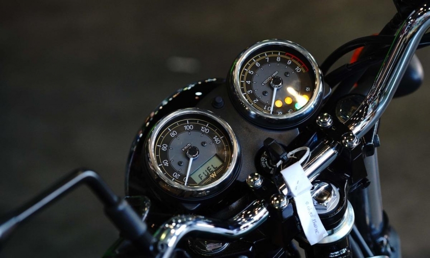 Phía trước tay lái là bộ đôi đồng hồ dạng kim (một hiển thị tốc độ và dung lượng nhiên liệu), đồng hồ còn lại thể hiện vòng tua, cấp số cùng cảnh báo động cơ. Cách bố trí này duy trì vẻ cổ điển nhưng vẫn đáp ứng nhu cầu theo dõi thông tin cơ bản khi vận hành.