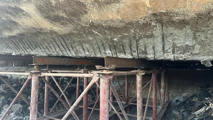Kết quả cũng ghi nhận, mố M1 và gối cầu tại đây vẫn trong trạng thái bình thường, không bị hư hại. Cốt thép đai chịu tác động bởi nhiệt, trong khi cốt thép dọc gần như không bị ảnh hưởng.
