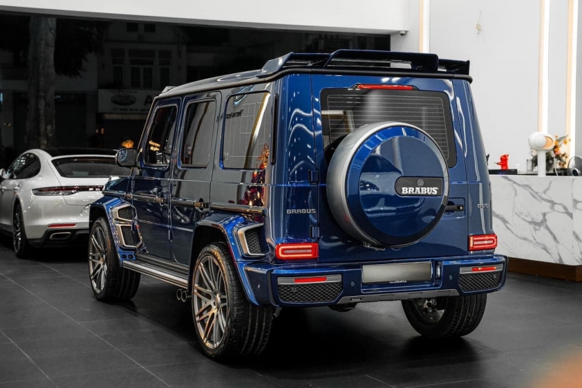 Khu vực đuôi xe nổi bật với bánh dự phòng gắn logo Brabus, cánh gió cỡ lớn làm từ carbon gắn trên nóc cùng hệ thống ống xả bằng thép không gỉ. Xe sử dụng bộ vành la-zăng sơn đen đa chấu kép có kích thước 23 inch.