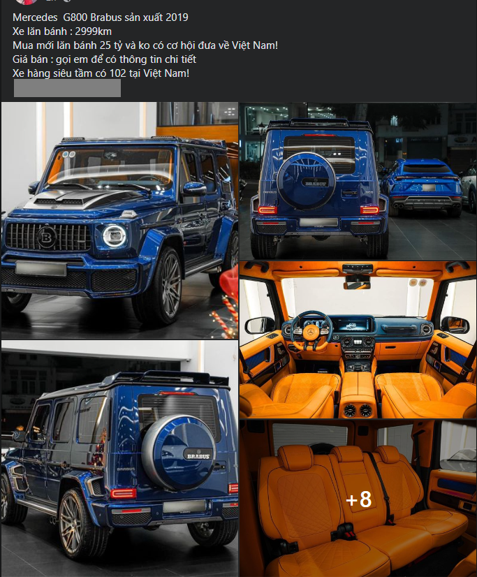 Người bán cũng cho biết giá lăn bánh của chiếc Mercedes Brabus G800 khi mua mới là 25 tỷ đồng. Như vậy, chỉ mới lăn bánh gần 3.000 km, chiếc Mercedes-AMG G63 độ Brabus G800 đã rớt giá tới khoảng 5 tỷ đồng.