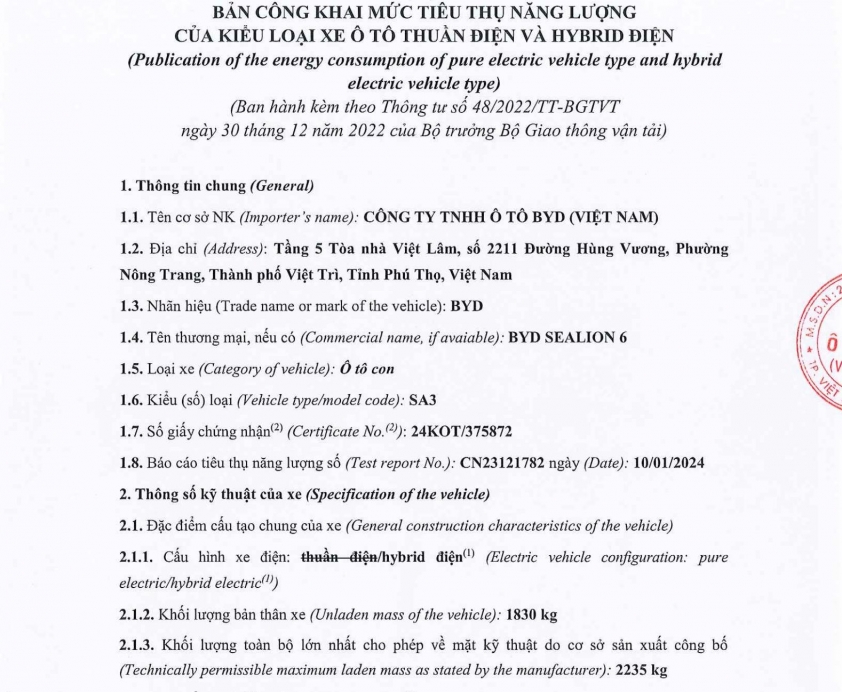 Mới đây, thông tin về mẫu xe BYD Sealion 6 đã xuất hiện trong dữ liệu của Cục Đăng kiểm Việt Nam, cho thấy mẫu xe này đang chuẩn bị gia nhập thị trường Việt Nam.