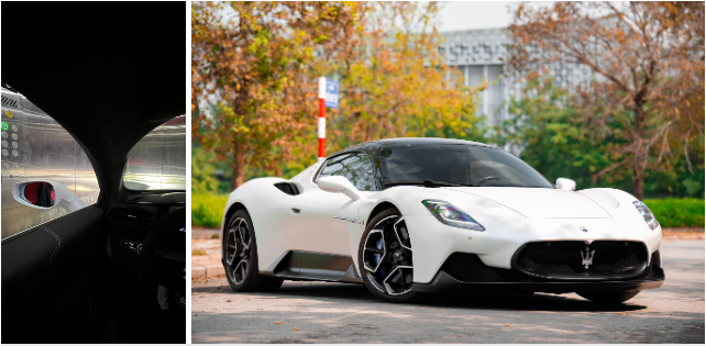 Một trong những chiếc siêu xe đáng chú ý khác là Maserati MC20, được vận chuyển lên bãi gửi xe bằng thang máy chuyên dụng. Đây là mẫu xe thể thao cao cấp có giá bán khoảng 20 tỷ đồng khi mua mới.