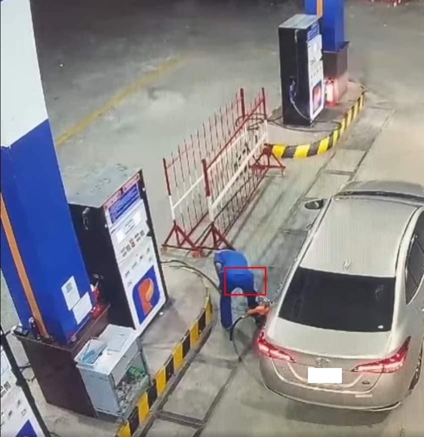 Theo đoạn video ghi lại, vào khoảng 20 giờ 12 phút ngày 14/10/2024, một chiếc ô tô mang biển số 62A-272.xx đã tiến vào cây xăng Đông Sài Gòn, gần công viên Võ Tấn Đồ (thị trấn Hậu Nghĩa, huyện Đức Hòa, Long An) để tiếp nhiên liệu.