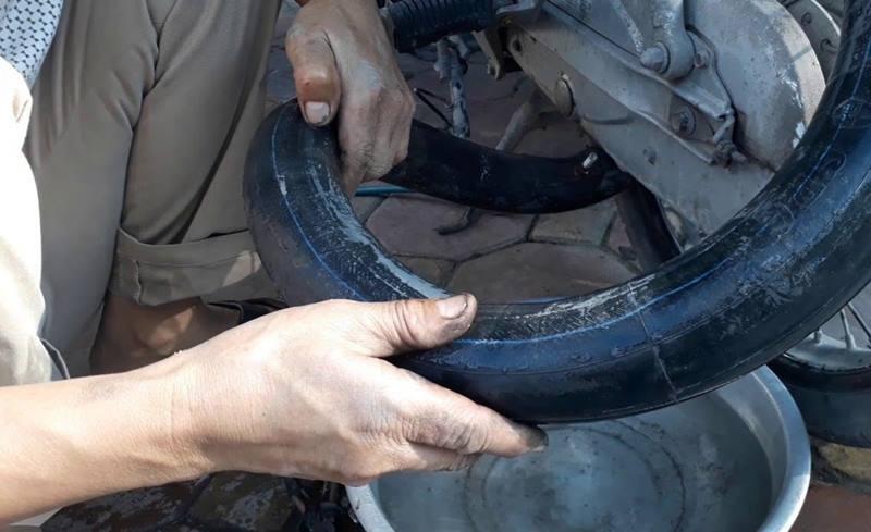 Xe máy bị thủng lốp - chuyện thường ngày trên đường phố