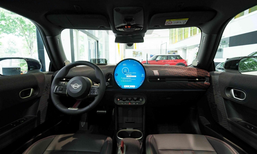 Khoang lái của Mini JCW giữ nguyên thiết kế đặc trưng với màn hình OLED tròn 9,3 inch điều khiển nhiều chức năng. Các chế độ lái gồm Go-Kart Mode, Green Mode và Personal Mode, mang đến trải nghiệm khác biệt tùy nhu cầu.