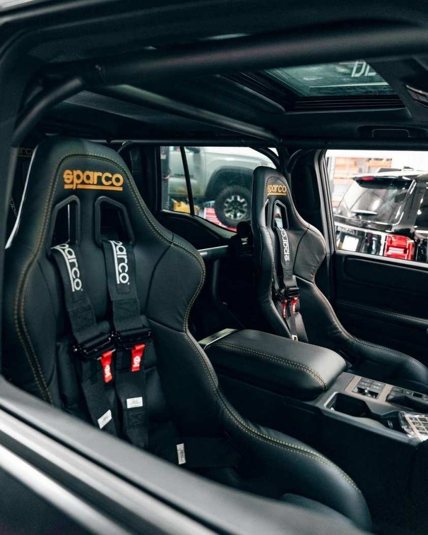 Nhóm thiết kế đã thay thế hàng ghế nguyên bản bằng ba ghế đua Sparco EVO S QRT, mỗi ghế được trang bị dây đai an toàn 5 điểm. Đáng chú ý, ghế giữa ở hàng ghế sau được đặt cao hơn, mang đến cảm giác như đang ngồi trên khán đài.