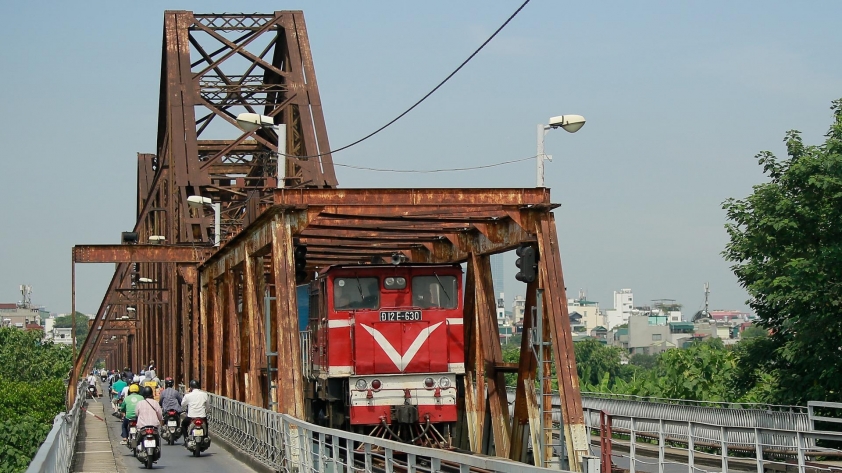 Lệnh cấm này áp dụng với tất cả người đi bộ, xe đạp, xe máy và xe ba bánh qua cầu Long Biên - cây cầu nối quận Hoàn Kiếm với quận Long Biên.