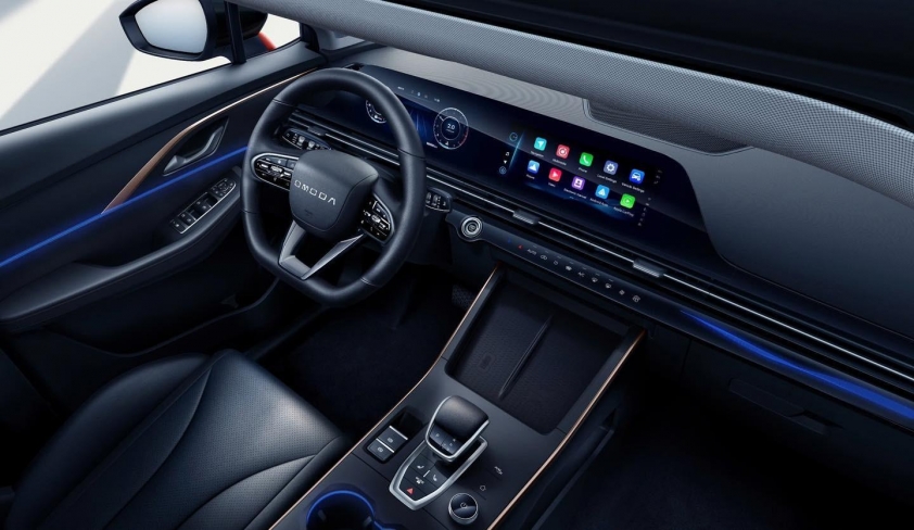 Bên trong cabin, Omoda C5 được trang bị màn hình kép 10,25 inch hỗ trợ kết nối không dây Apple CarPlay và Android Auto, đi kèm tính năng ra lệnh bằng giọng nói.