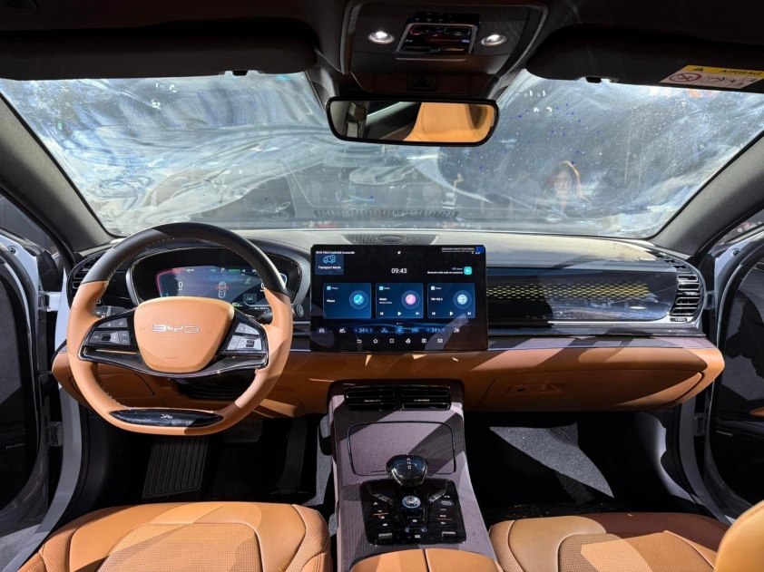 Những trang bị tiện nghi đáng chú ý có vô-lăng 2 chấu dạng đáy phẳng, cần số điện tử BYD Heart, màn hình cảm ứng trung tâm 15,6 inch có thể xoay ngang hoặc dọc, hỗ trợ điều khiển bằng giọng nói, hệ thống đèn nội thất 128 màu, đế sạc không dây và hệ thống âm thanh Dynaudio 12 loa cao cấp.