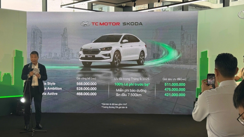 Mẫu sedan hạng B Skoda Slavia được bán tại Việt Nam với 3 phiên bản, giá từ 468 - 568 triệu đồng. Nhờ ưu đãi đặc biệt tháng 9/2025, khách hàng chỉ cần chi từ 421 triệu đồng để sở hữu mẫu xe mới này.